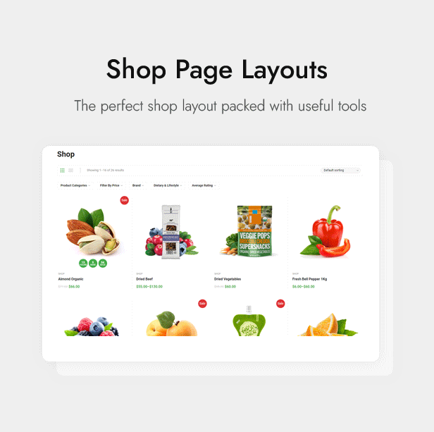 - Chế độ xem lưới và chế độ xem danh sách cho trang cửa hàng